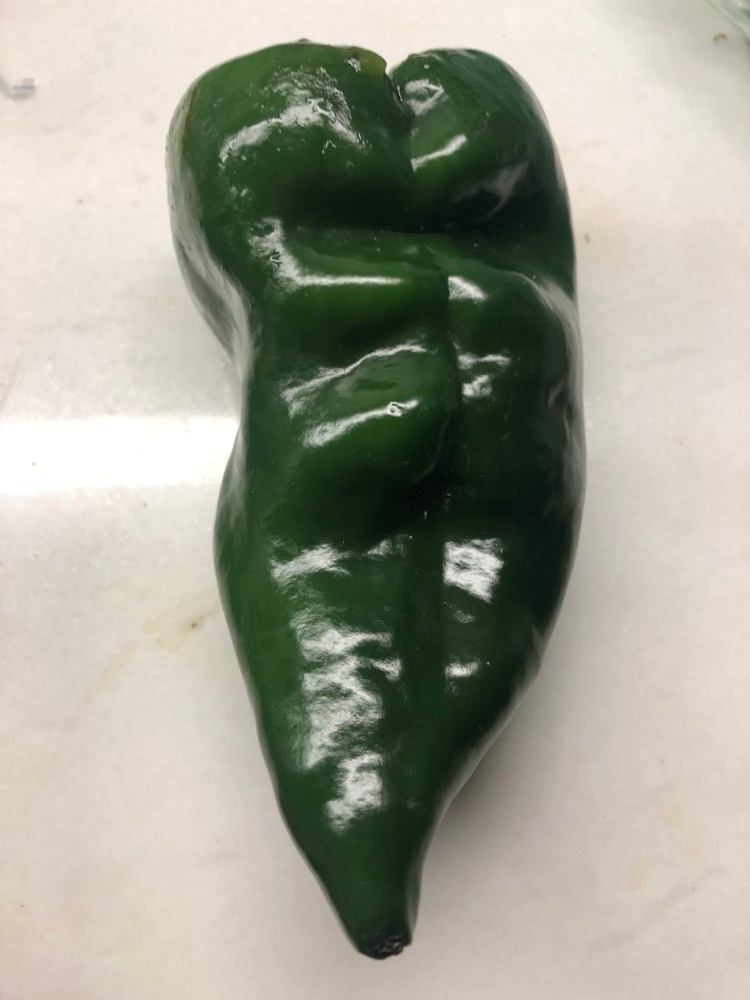 But what’s scary is working with peppers, especially when I just ordered the ingredients off Instacart and wasn’t entirely sure which were the poblano peppers and which were the serrano chiles.