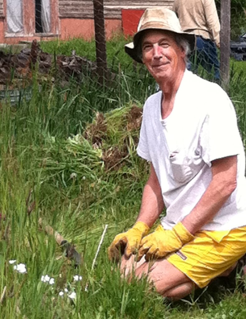 He pulls weeds and fixes fences.